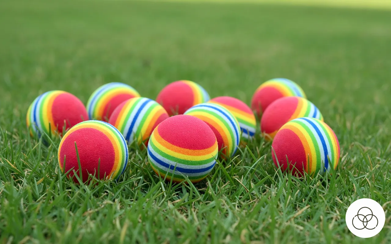 Otin nämä vaahtogolfpallot mukaan leirille. Kaikenikäiset käyttivät niitä, eikä kukaan loukkaantunut. Todella kevyitä, eivät lennä vaarallisen pitkälle.