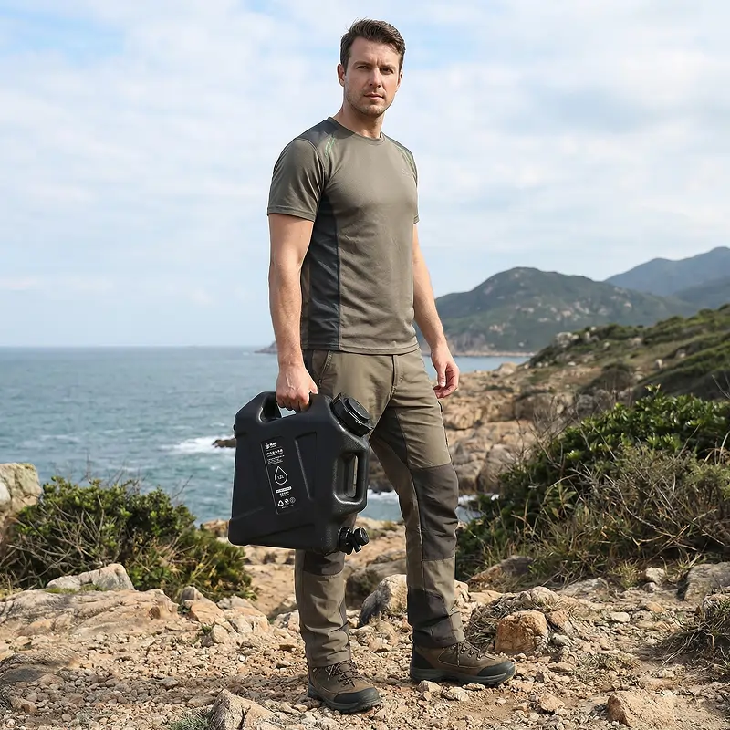 Pidän tätä kanisteria autotallissa hätätilanteita varten. Vesi pysyy raikkaana, ei muovin makua, ja tukevat seinämät kestävät jatkuvan siirtelyn.