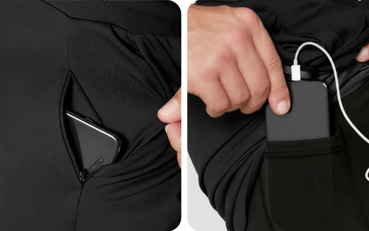 Vetoketjulliset ja sivutaskut pitävät puhelimen ja avaimet turvallisesti. Nauti juoksusta tai painonnostosta ilman, että mikään pomppii tai liikkuu.