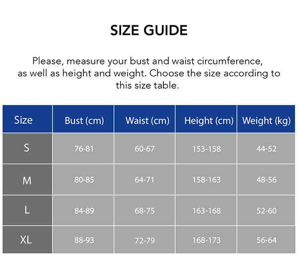 Aktiiviset naiset tarvitsevat märkäpuvun, joka on tehty juuri heille! THREO-märkäpuku myötäilee vartalon muotoja ja on suunniteltu tarjoamaan naisen keholle täydellinen kelluvuus. Anatomisesti leikatut kaavat takaavat ensiluokkaisen mukavuuden ja erinomaisen istuvuuden. Tämä vedenpitävä märkäpuku on valmistettu laadukkaasta joustavasta neopreenista ja erittäin elastisesta nailonkankaasta, jonka paksuus on 3 mm. Se on pehmeä ja mukava pitkäaikaiseen käyttöön vedessä. 3 mm neopreenimärkäpuku tarjoaa paremman eristyksen ja voi hidastaa kehon lämpötilan laskua. Se tarjoaa lämpöä, mukavuutta ja suojaa auringolta samalla kun säilyttää täyden liikkumisvapauden melontaan.
