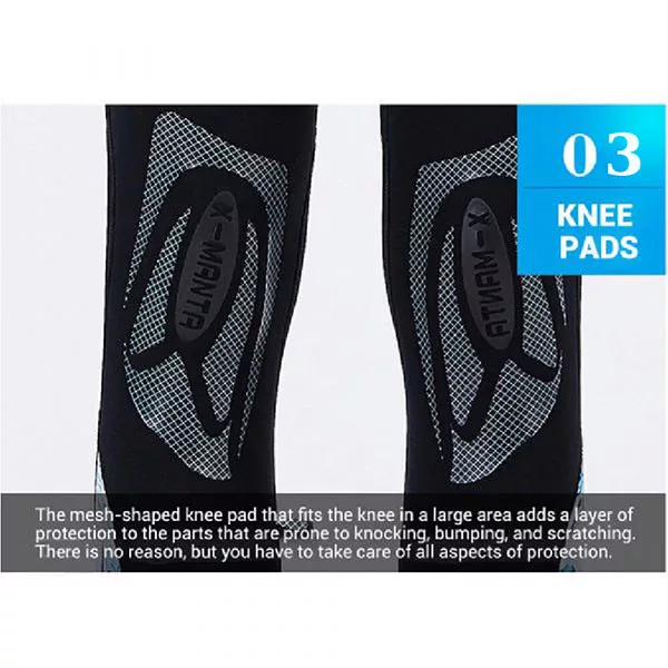 Lisäksi tässä märkäpuvussa on kulutusta kestävät polvisuojat. Verkkokuvioinen polvisuoja on kestävä, pitkäikäinen ja tarjoaa paremman suojan alueille, jotka ovat alttiita kolhuille, iskuille ja naarmuille. Paksumpaa neopreenia on käytetty vartalon alueella ja ihopoimujen herkät kohdat on saumattomasti leikattu. Lisäksi märkäpuku erottuu merellä tyylikkään muotoilunsa ansiosta.