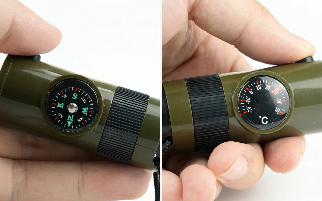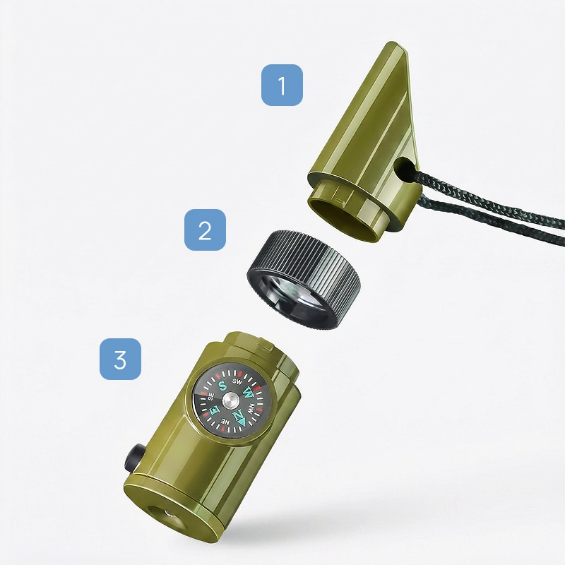 Voimakas ääni, kirkas taskulamppu ja kätevä peili herättävät nopeasti huomiota. Säilytä pienet välttämättömyystarvikkeet turvallisesti, valmiina käyttöön milloin tahansa.