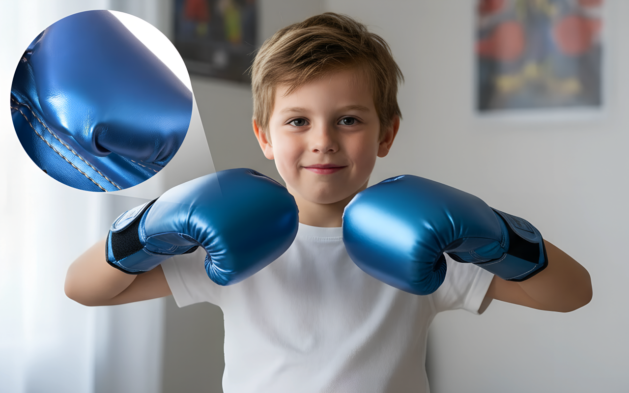 Pikkusiskoni harrastaa innokkaasti nyrkkeilyä ja nämä ovat hänen suosikkihanskansa. Ei punaisia rystysiä eikä juurikaan hikoilua. Väritkin onnistuneet!