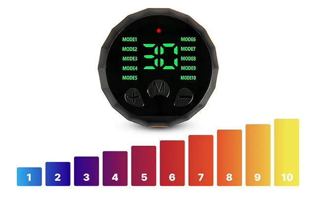 Säädä voimakkuus haluamallesi tasolle. Aloita kevyesti ja lisää tehoa vatsalihasten vahvistuessa.