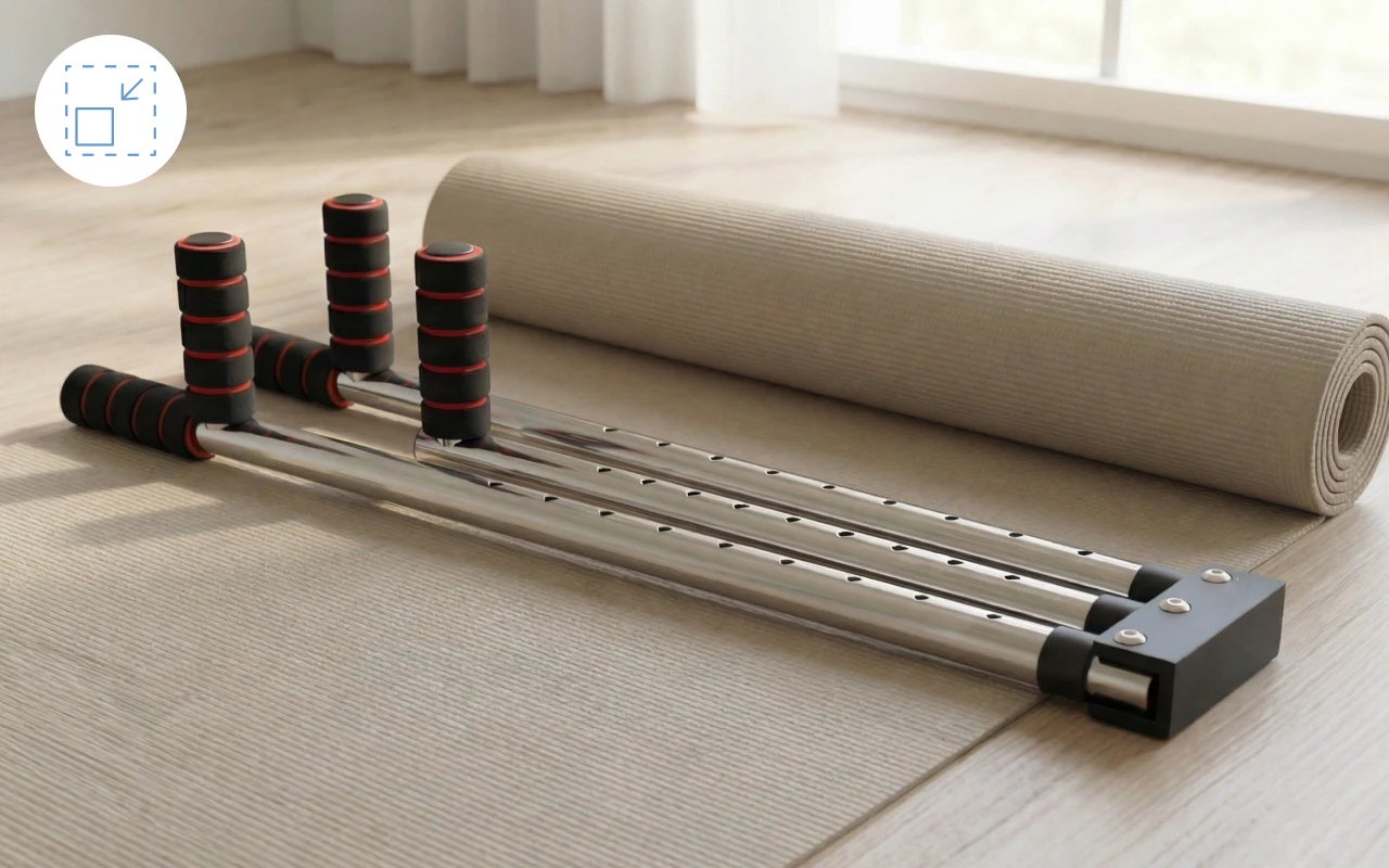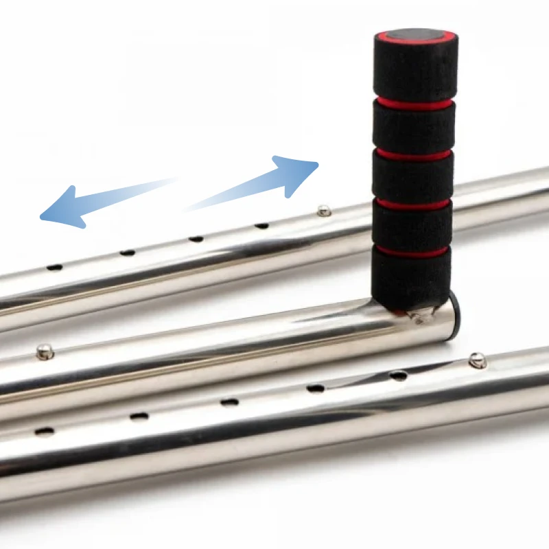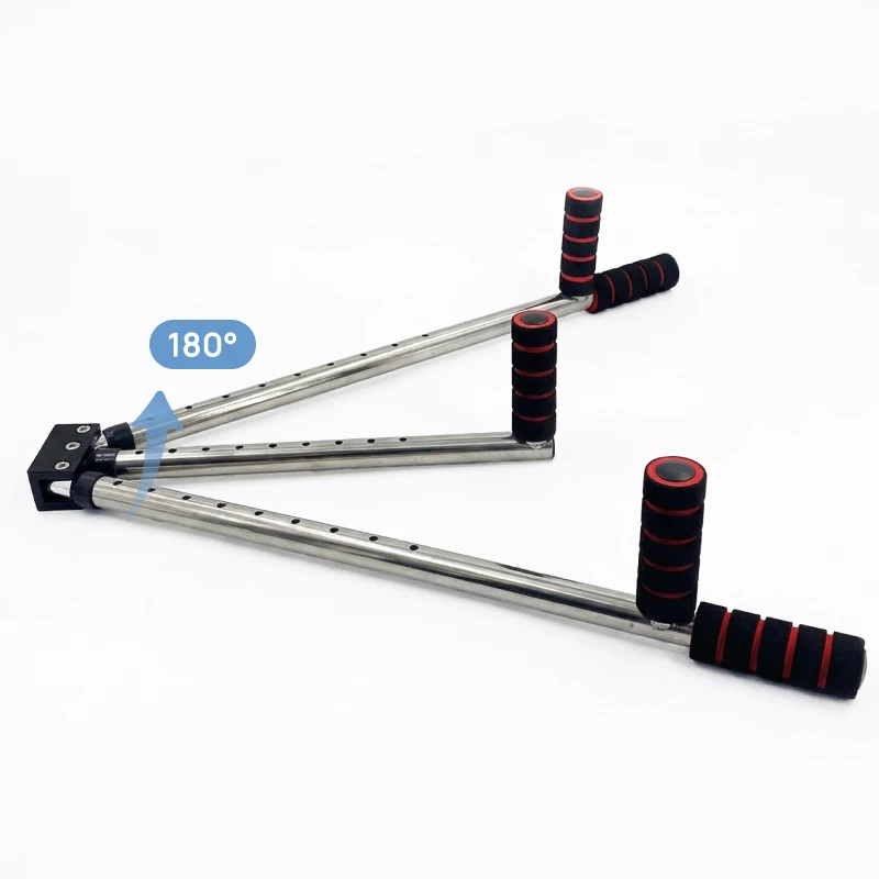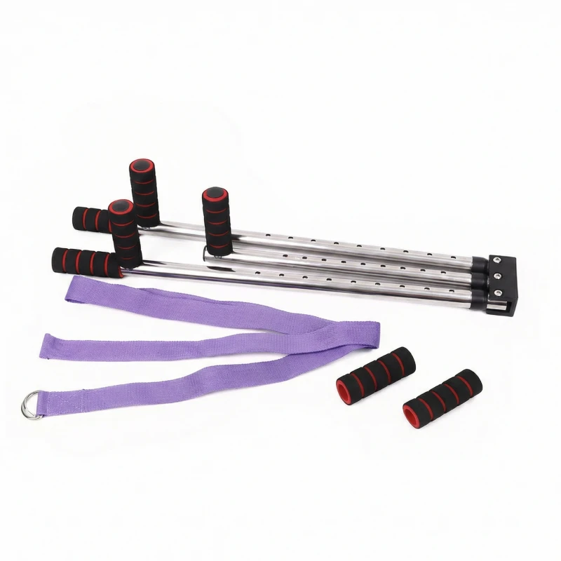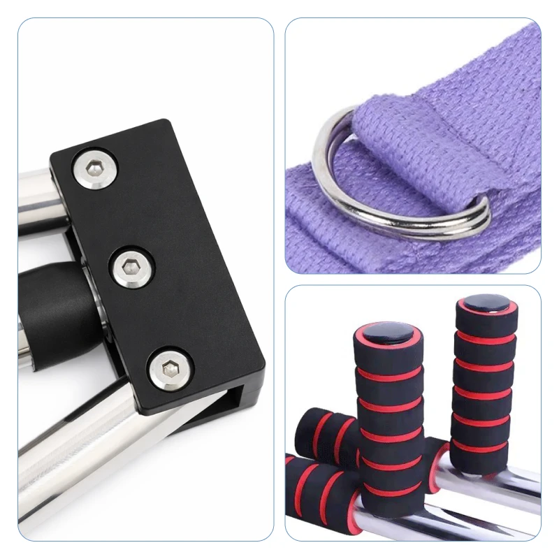 Ruostumattomasta teräksestä valmistetut tangot ja pehmustetut kahvat tarjoavat kestävää tukea. Pehmeä vaahtomuovi suojaa jalkoja kivuttomissa venytyksissä.