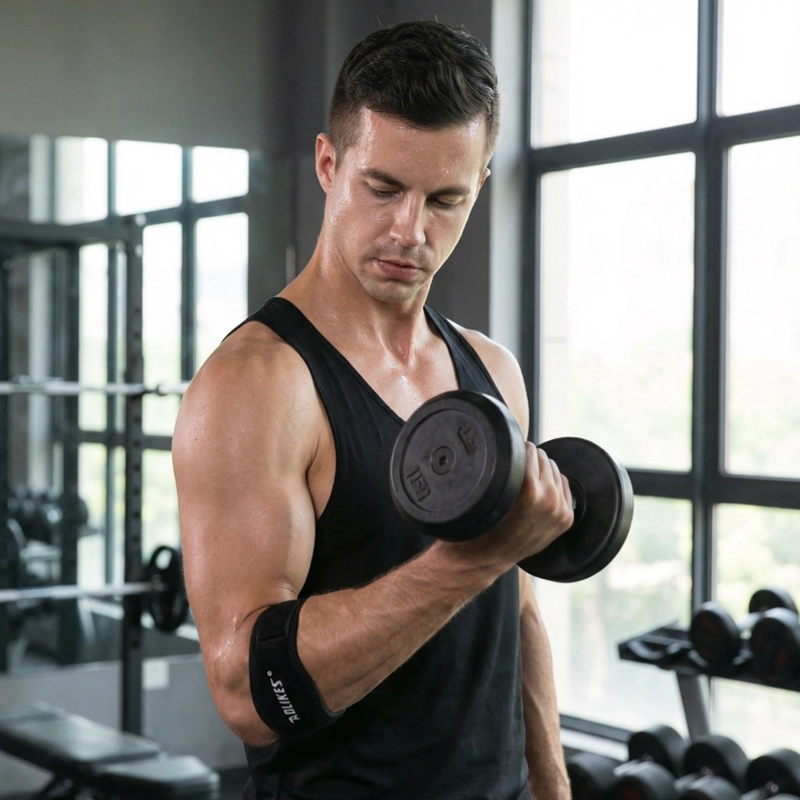 Pidän siitä, ettei tämä tuki liu’u pois päältä edes kuntosalilla. Paine lievittää kipua ja kangas pitää käteni viileänä.