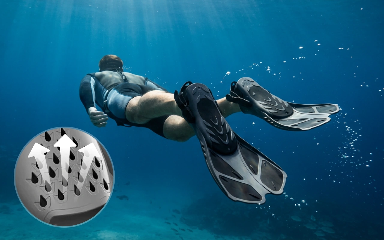 Käytän näitä paikallisessa uimahallissa jalkatreeneihin. Ne antavat tasaista voimaa rasittamatta pohkeita, ja pidän siitä, että varpaat eivät tunnu ahtailta tai puristuksissa.