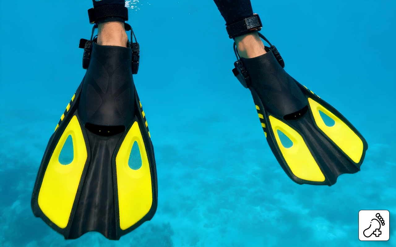 Pehmeät kumitaskut tukevat hellävaraisesti kaikkia jalkaterän muotoja. Ei enää arkoja varpaita tai hankausta uinnin jälkeen.