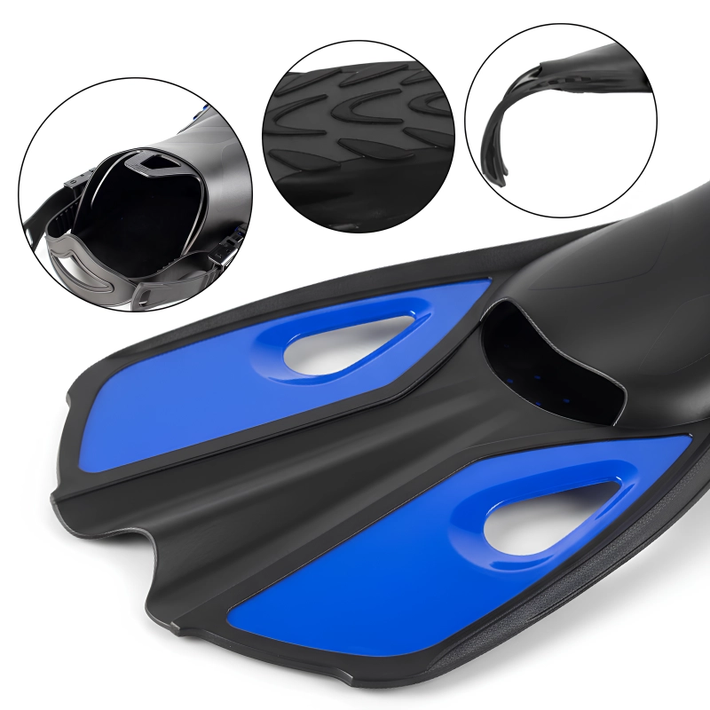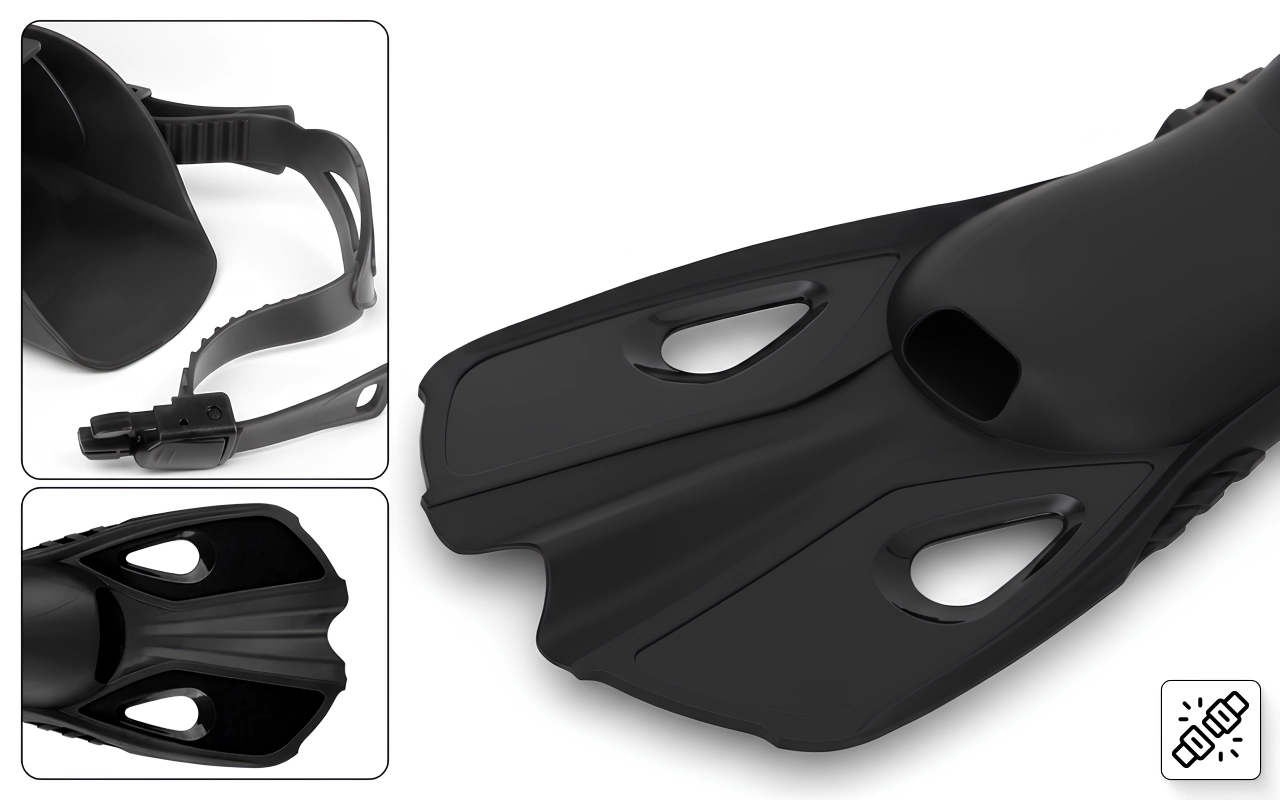 Liiku nopeasti käyttäen vähemmän energiaa jokaisella potkulla. Joustavat lehdet auttavat sinua liukumaan veden halki vaivattomasti.