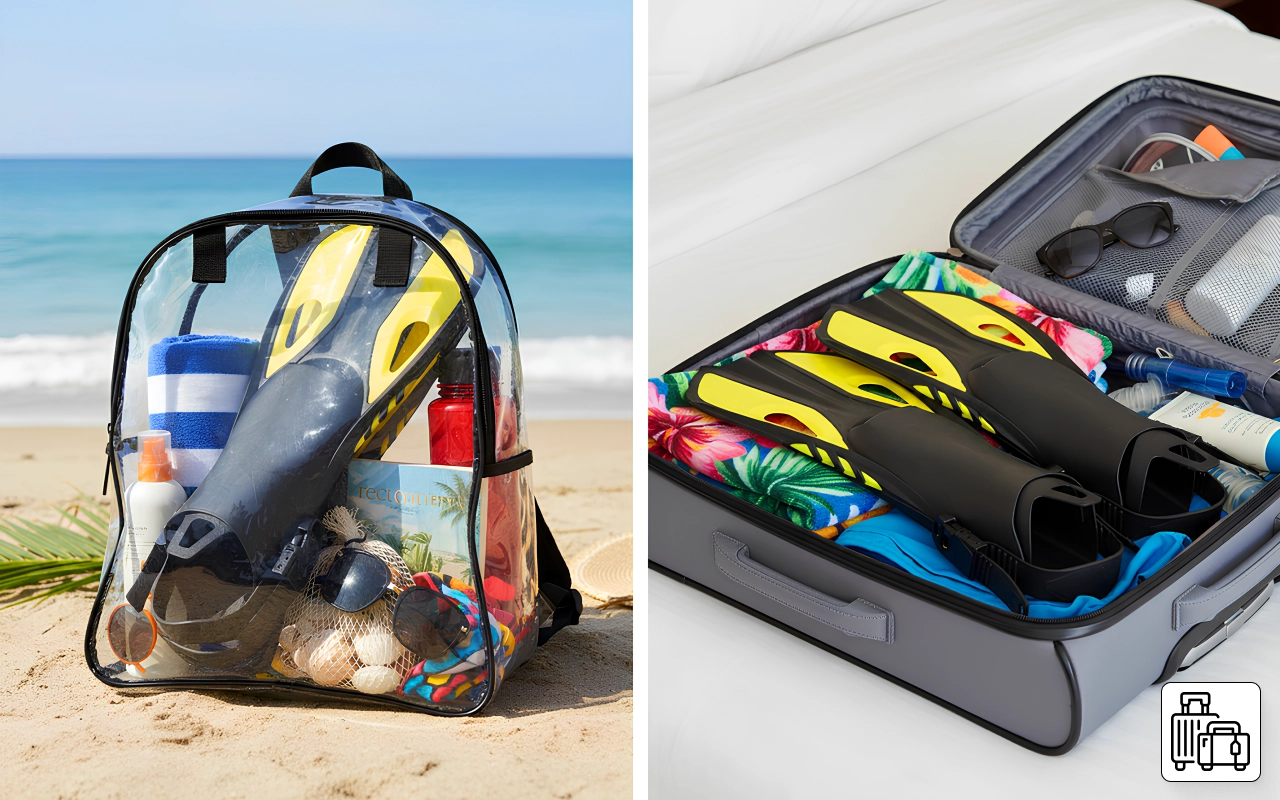 Kevyet räpylät mahtuvat helposti mihin tahansa matkalaukkuun tai kassiin. Täydellinen lomille, uimakouluun tai nopeille pulahduksille altaaseen.