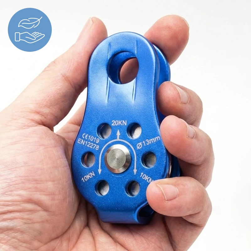 Sileä väkipyörä antaa köysien liukua hellästi joka kerta. Vähentää kitkaa nopeampaan ja turvallisempaan etenemiseen jyrkillä seinillä.