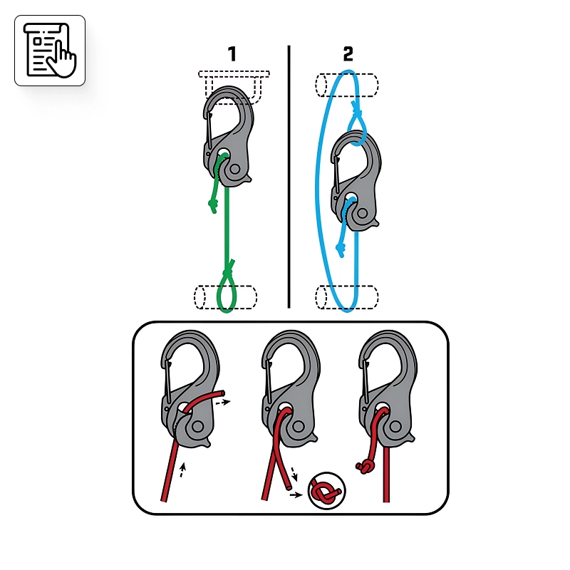 Kiristä köydet tiukasti sekunneissa älykkään kammasysteemin avulla. Unohda hankalat solmut ja huoli löysistä sidonnoista ulkona.