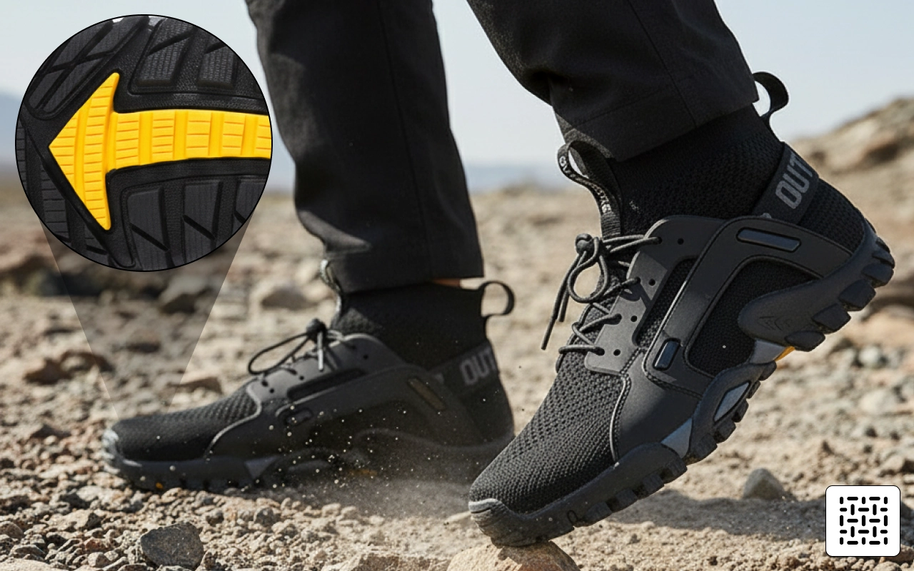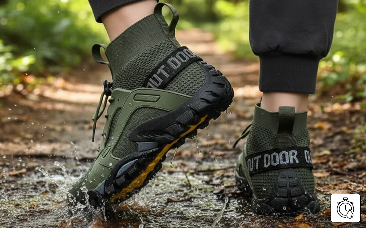 Erityiset pohjat ehkäisevät liukastumista mutaisilla poluilla tai kivillä. Luota joka askeleeseen, missä tahansa seikkailetkin ulkona.
