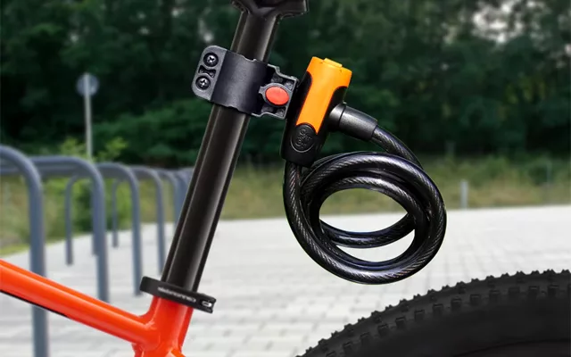 Kompakti pidike tarjoaa kätevän säilytyksen. Kiinnitä se pyörääsi, niin sinulla on lukko aina mukana tarvittaessa.