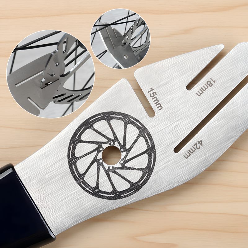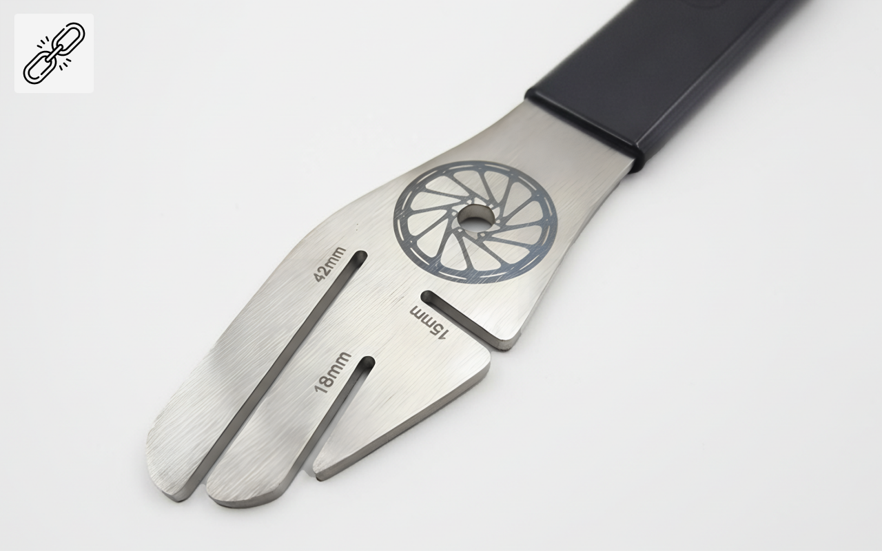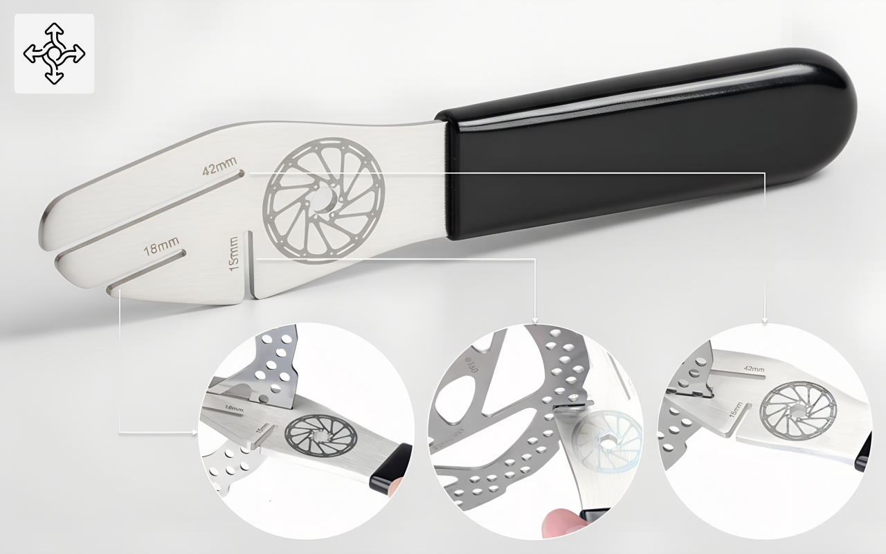 Kolmen syvyyden ansiosta työkalumme mukautuu erilaisiin jarrupalojen väleihin. Tämä monipuolisuus tekee siitä sopivan monenlaisiin polkupyöriin.