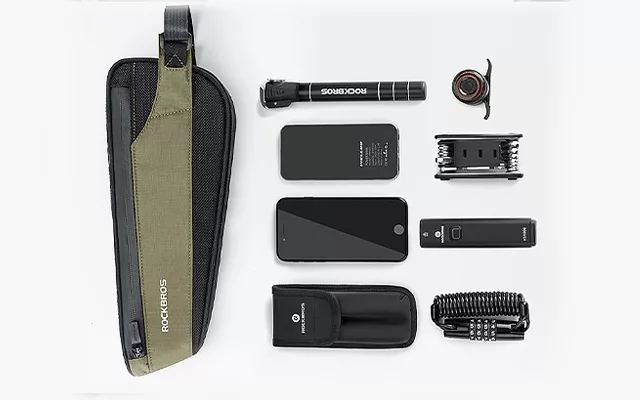 En enää koskaan hukkaa välipaloja tai avaimia! Laukku pysyy paikoillaan epätasaisilla teillä ja mahtuu kaikki, mitä tarvitsen. Heijastava logo on hyödyllinen yöajeluilla. Rakastan tätä!