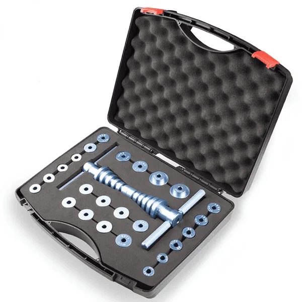 Pyörän laakeripuristimemme on erinomainen valinta laakereiden poistamiseen ja asentamiseen pyörässä. Se ei ainoastaan säästä aikaa, vaan myös estää kuluneiden osien aiheuttamat vauriot. Työkalujen korkealaatuinen ruostumaton teräs takaa luotettavuuden myös pitkäaikaisessa käytössä. Kätevä kantokotelo pitää kaiken järjestyksessä yhdessä paikassa. Sarja takaa huolettomat korjaukset aina tarvittaessa!