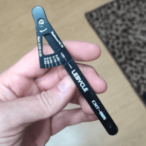 Tämä työkalu mittaa ketjun kulumista, ja sen käyttö on erittäin helppoa. Se on hyvä olla pyörätyökalupakissasi varmuuden vuoksi!