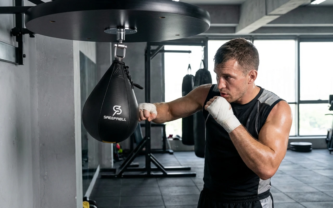 Ostin tämän päärynäpussin pieneen autotallisalini. Pallo kimpoaa nopeasti, joten ajoitukseni ja keskittymiseni ovat parantuneet selvästi jo parissa viikossa.