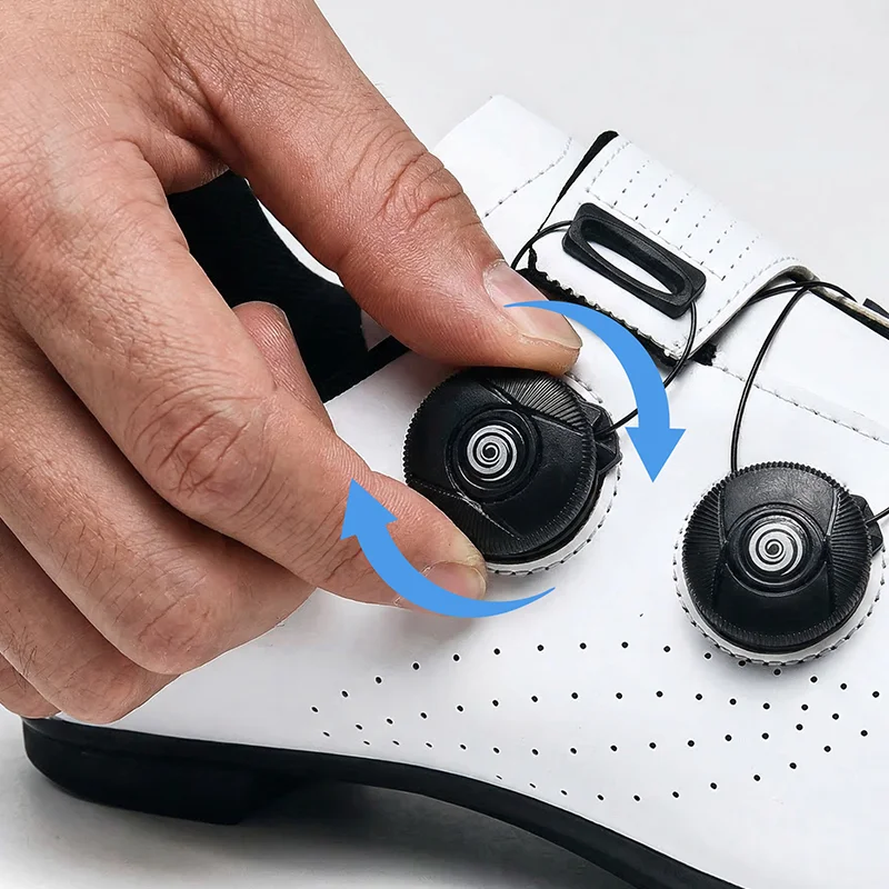 Kiristyspyörä mahdollistaa istuvuuden säädön sekunneissa ilman säätämistä. Kengät pysyvät napakasti jalassa liukumatta, mikä parantaa hallintaa kaikilla teillä.