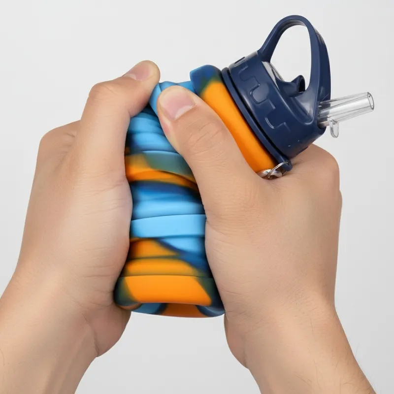 Threo-silikonipullo on fiksu ratkaisu liikkuvalle ihmiselle. Sen suunnittelu säästää tilaa laukussa tai matkalaukussa. Se on erinomainen vaihtoehto tilaa vieville kertakäyttöpulloille.