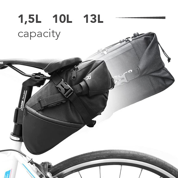 THREO:n suuri kapasiteetin satulalaukku sopii monenlaisille polkupyörille ja ulkoilupyöräilyyn. Tämä laukku tarjoaa virtaviivaisen tavan kuljettaa varusteita ilman takatelineen tarvetta. Pääosastossa on suuri tasku, jossa on iskunkestävä pehmuste. Se auttaa suojaamaan tavaroitasi iskuilta. Lisäksi tässä pyörälaukussa on omistettu vetoketjuosio erilaisten tavaroiden turvalliseen ja järjestettyyn säilytykseen. Sen suuret sivutaskut on suunniteltu pienten tavaroiden säilytykseen. Näin ollen tämä tuote voi kuljettaa kaikki välttämättömäsi, aina älypuhelimestasi pieneen ensiapupakkaukseen.
