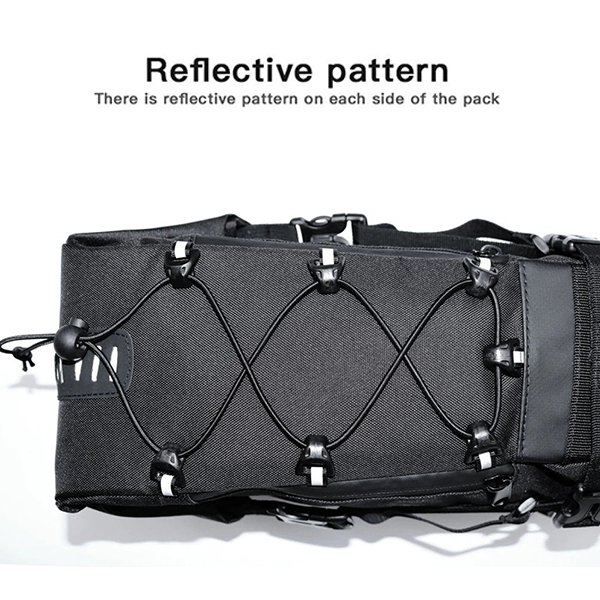 Pyörälaukku on valmistettu vahvistetuilla saumoilla, jotka lisäävät lujuutta ja kestävyyttä. Siinä on erityisiä harmaita heijastavia alueita hihnoissa ja logossa, jotka parantavat näkyvyyttä ja varmistavat turvallisen ajon pimeällä. Tämä parantaa merkittävästi turvallisuuttasi.
