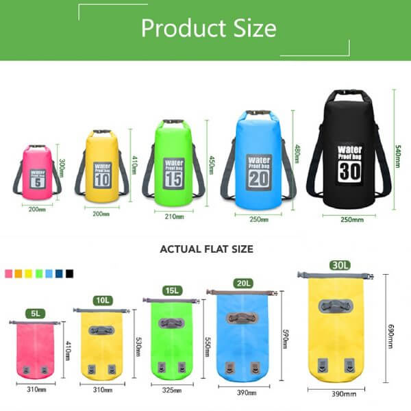 Saatavana 5, 10, 15, 20 ja 30 litran kokoisina, jotka auttavat järjestämään ja suojaamaan kaikki varusteesi, pelastavasta kerroksesta puhelimiin ja kameroihin. Se on täydellinen kevyt laukku koskenlaskuun, kajakkimelontaan, rannalle, telttailuun, vaellukseen, sukellukseen ja muihin aktiviteetteihin, joissa haluat suojata arvotavarat vedeltä.