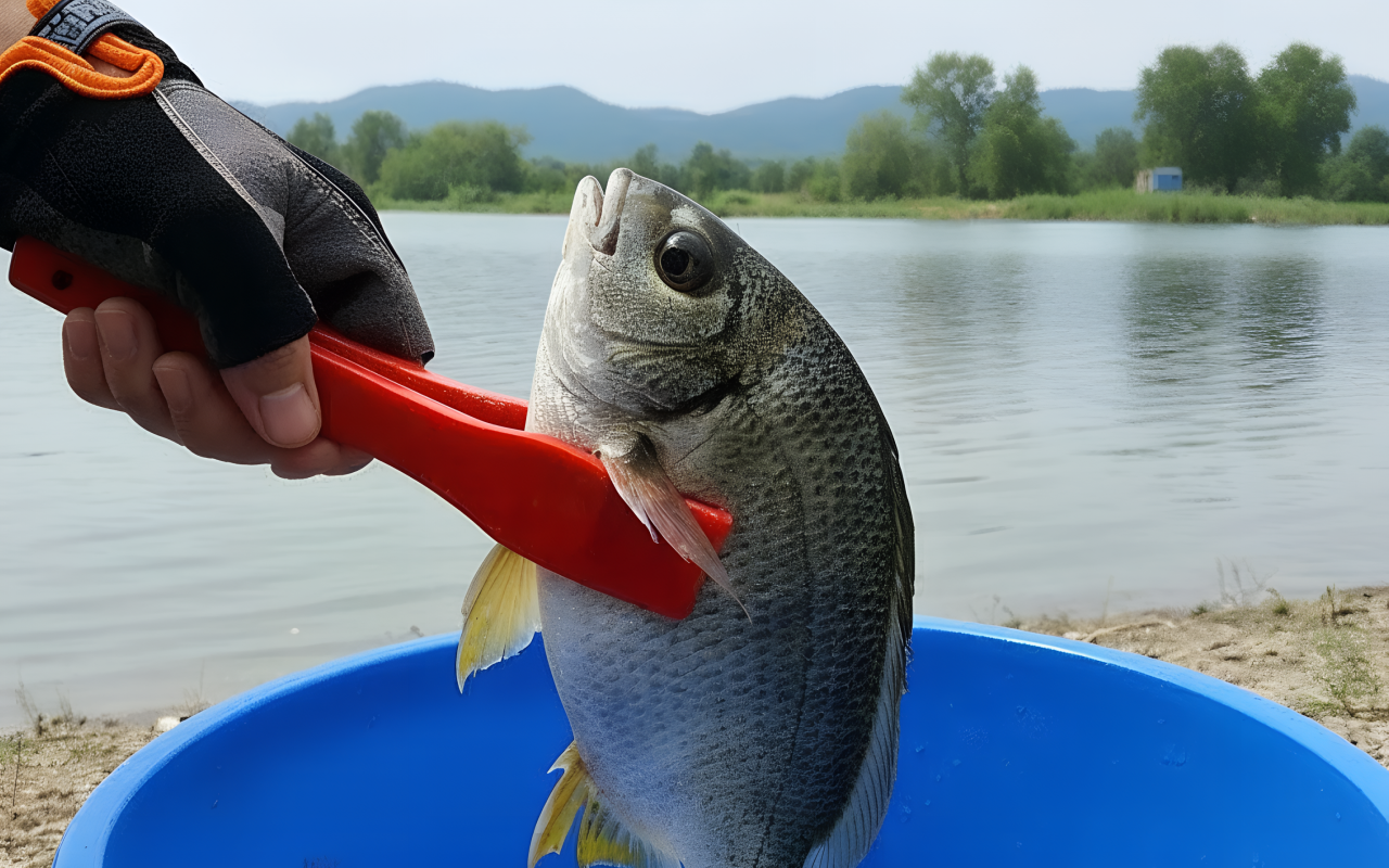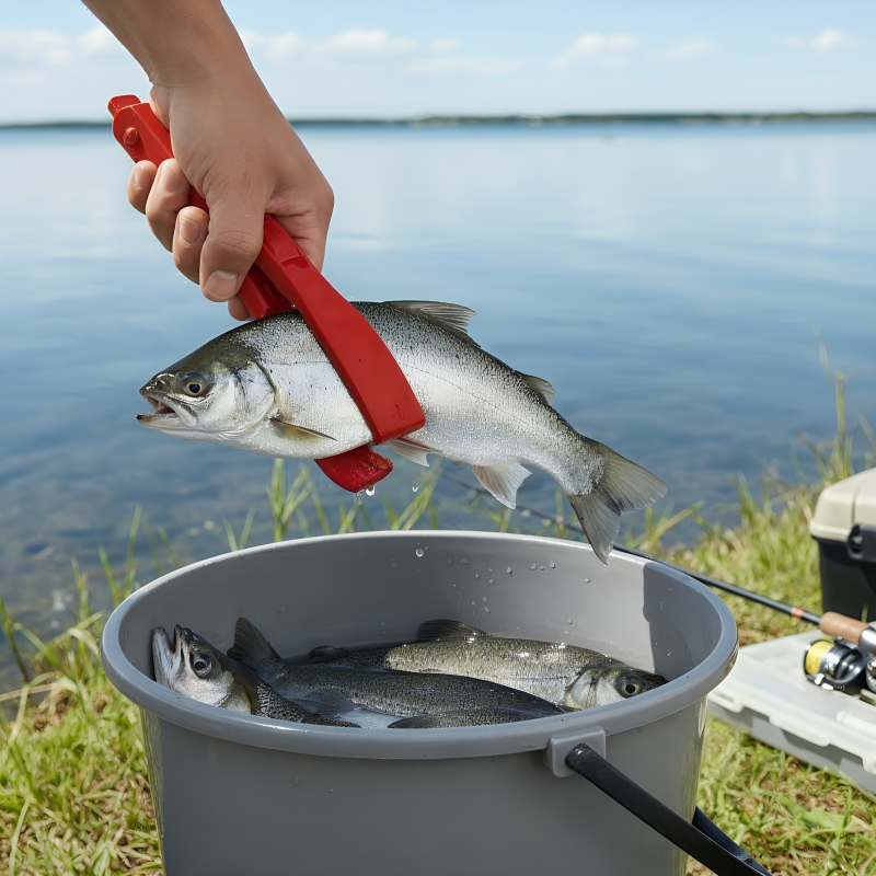 Pikkuveljeni pystyy käsittelemään isoja saaliita tällä puristimella, ja se aukeaa helposti satuttamatta sormia tai kalaa.