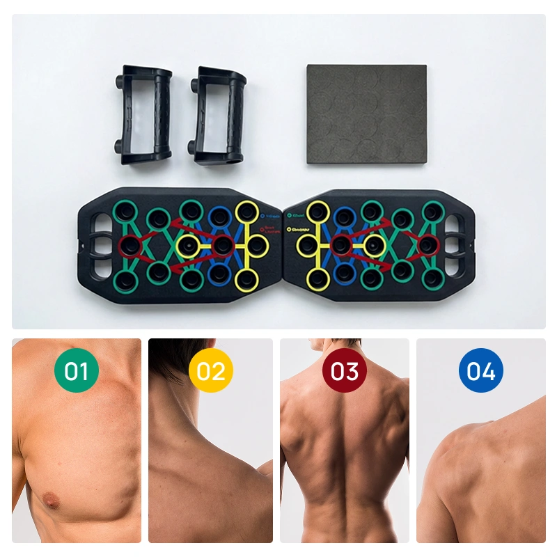 Värikoodatut asennot ohjaavat kädet osumaan tiettyihin lihasalueisiin. Nauti tasapainoisesta voimasta rinnassa, käsissä, hartioissa ja selässä.
