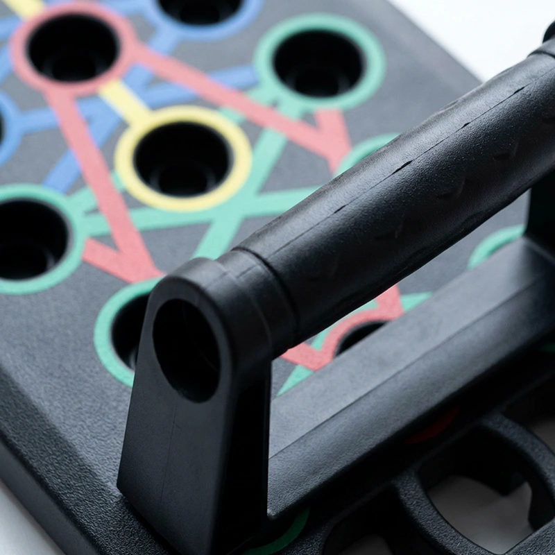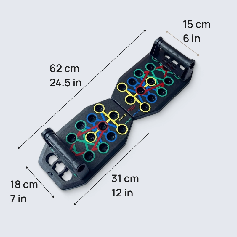 Ostin tämän taitettavan laudan, jotta voin treenata ennen töitä. Värilliset pisteet tekevät käsien asettelusta helppoa, ja rintalihakset sekä ojentajat tuntuvat töissä joka treenikerralla.
