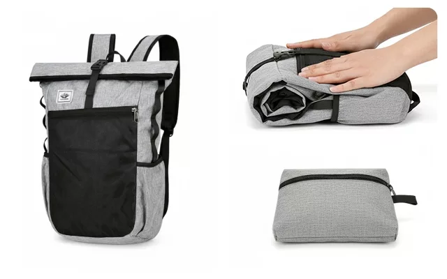 Käytin tätä koulun luontoretkellä vuorille, sinne mahtui lounas ja takki. Helppo taittaa kasaan, kun ei tarvitse.