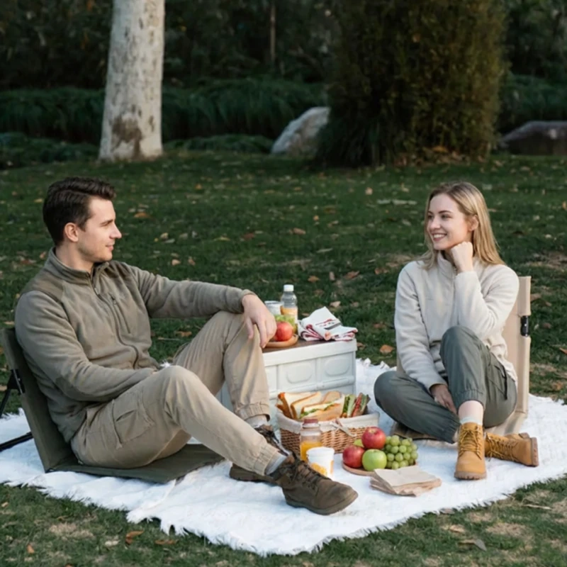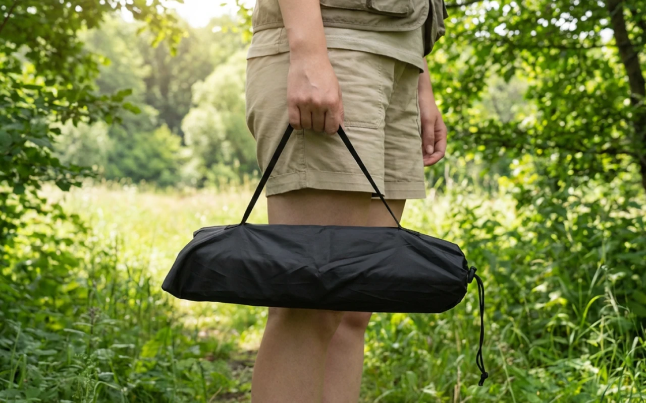 Hankin tämän ulkoilmakonsertteihin puistossa. Kun muut istuivat huovilla, minun selkäni oli tuettu ja pysyi kuivana. Pakkautuu nopeasti kasaan, kun lähdemme pimeällä.