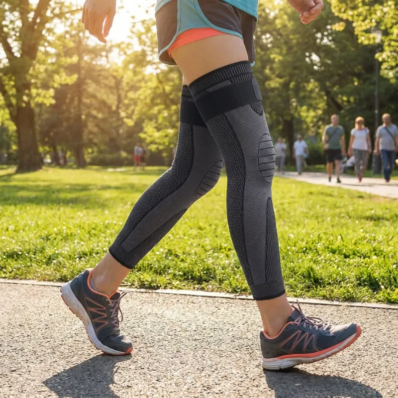 Hellä puristus rauhoittaa polvia ja pohkeita rasituksen jälkeen. Turvotus ja särky helpottavat, jotta voit keskittyä siihen, mikä on sinulle tärkeintä.