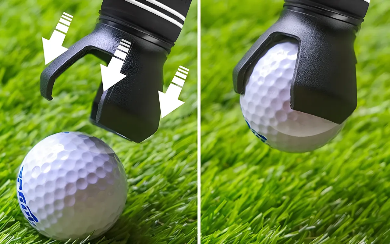 Golf on hauskempaa kun ei tarvitse koko ajan kumarrella. Tämä pikku apuri kiinnittyy nopeasti ja nappaa pallon täydellisesti jokaisen putin jälkeen.