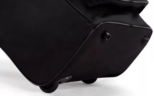 Tänne mahtuu kaikki, en vitsaile! Mailat, kengät, jopa sadetakki. Lisäksi se rullaa niin sulavasti kaikkialla.