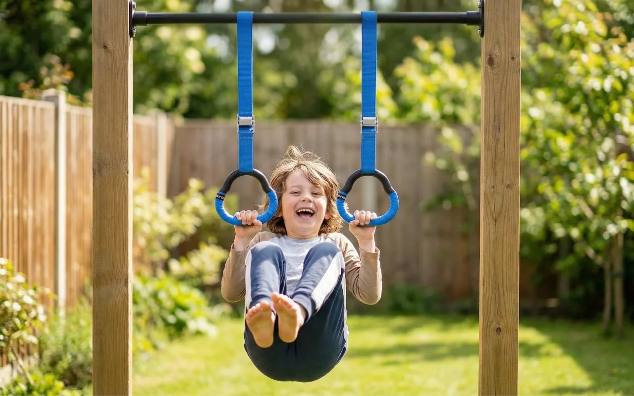 Mahtava koulun jälkeiseen leikkiin! Pikkuveljeni kanssa kisaamme, kumpi jaksaa enemmän leuanvetoja. Pehmeät kahvat tuntuvat hyvältä käsissä.