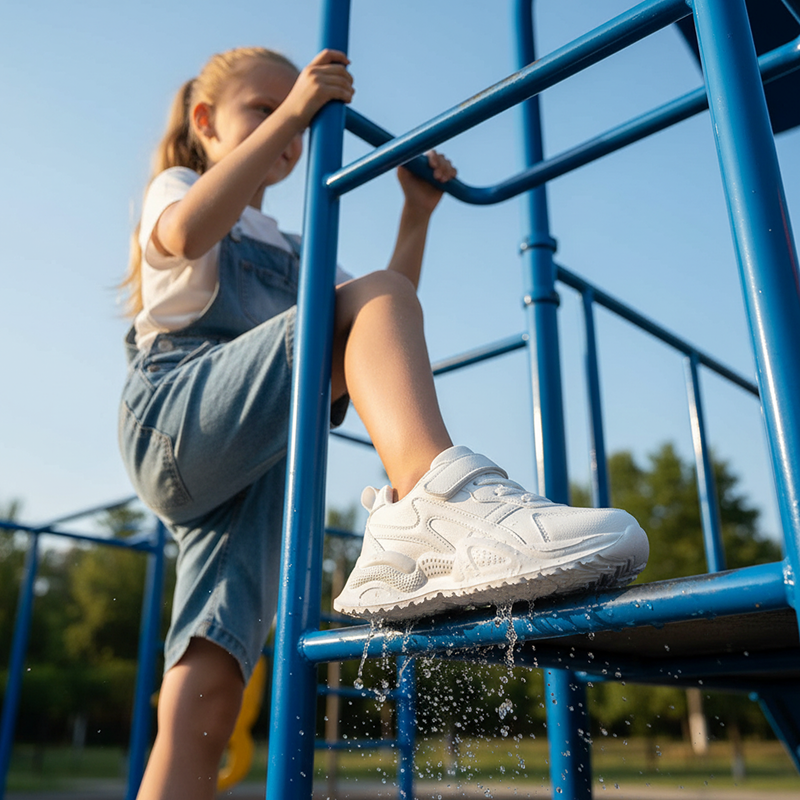 Paksut pohjat estävät liukastumista märillä leikkikentillä tai liikuntasalissa. Lapset liikkuvat turvallisesti missä ikinä kulkevatkin.