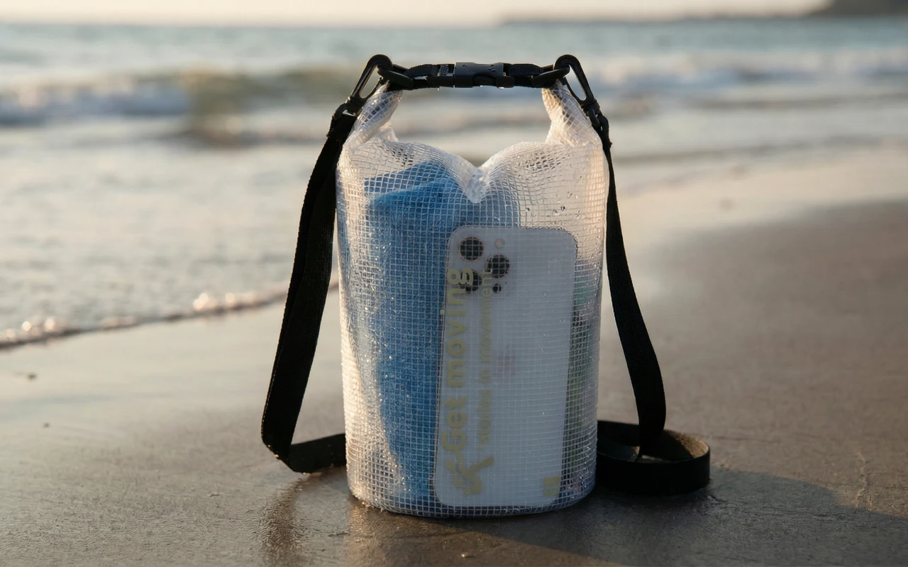 Tavarat pysyvät kuivina vedenpitävän verkkokankaan ansiosta. Roiskeet tai hiekka eivät pääse sisään, joten omaisuus pysyy turvassa.