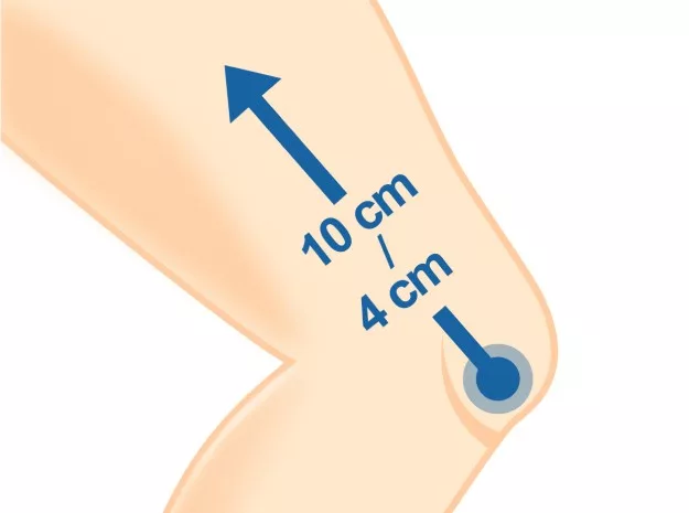 - 2. Kiedo mittanauha reidesi leveimmän kohdan ympäri noin 10 cm/4" polvilumpion keskipisteen yläpuolelta.