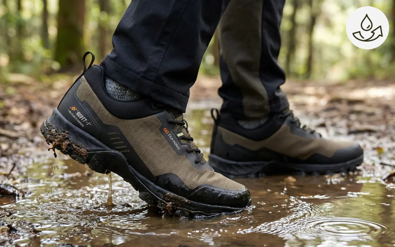 Kävelin mutaisilla poluilla eikä kengät kastuneet sisältä. Todella kevyet jaloissa, mikä helpotti vaellusta.