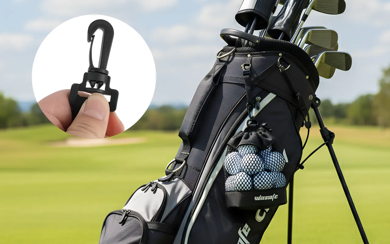 Threo-pallopussi kiinnittyy helposti golfbägiin, kärryyn tai reppuun nopeaa käyttöä varten.