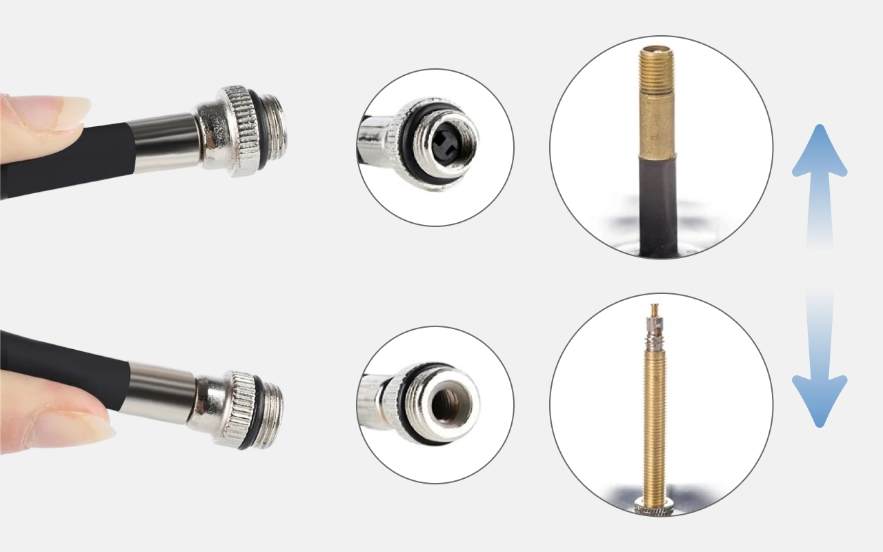 Vaihda sujuvasti Schrader- ja Presta-venttiilien välillä millä tahansa lenkillä. Et tarvitse ylimääräisiä sovittimia pyöräilytarpeisiisi.