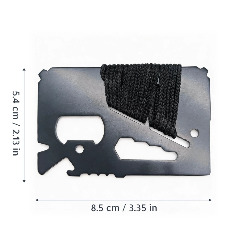 Threo EDC -kortti sujahtaa lompakkoosi ja on valmiina käyttöön tarvittaessa. Kohtaa odottamattomat tilanteet itsevarmasti retkeillessä, pyöräillessä tai leiriytyessä. Kestävä rakenne varmistaa, että olet valmistautunut kaikkiin tilanteisiin. Ei enää huolta raskaista varusteista — ota vain mukaan ja lähde.