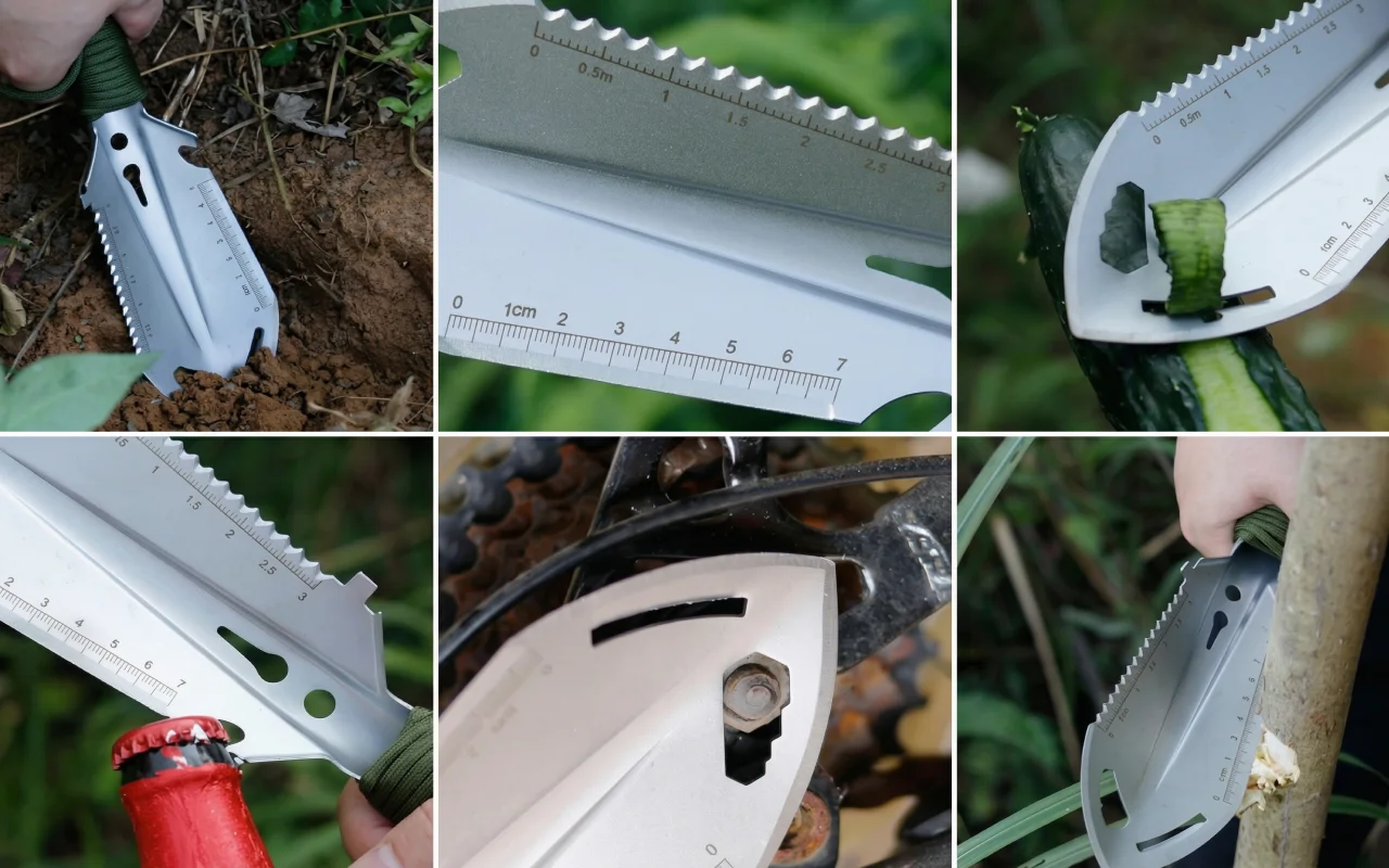 Hankin tämän perheemme leirintälaatikkoon ja kaikki käyttävät sitä, roskakuoppien kaivamisesta oksien sahaamiseen ja jopa telttanarujen mittaamiseen helposti.