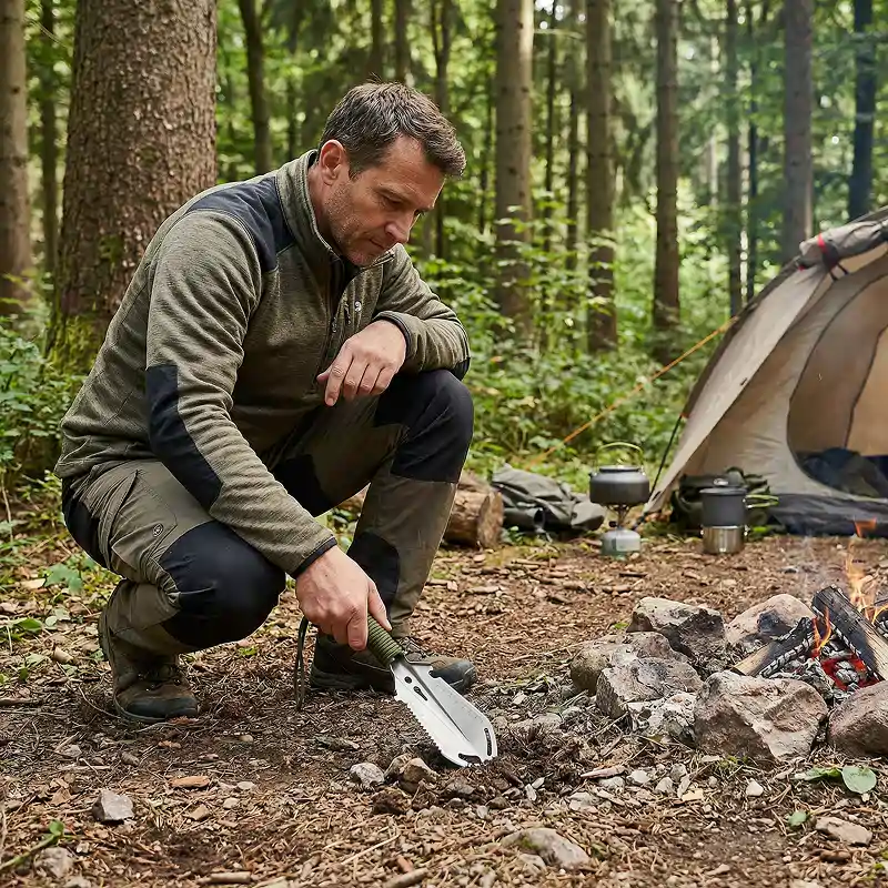 Käytin leirilapiota vaeltaessa vuorilla; se auttoi juurien raivaamisessa polulta, pienen suojapaikan kaivamisessa ja tikkujen katkaisemisessa makkaranpaistoa varten.