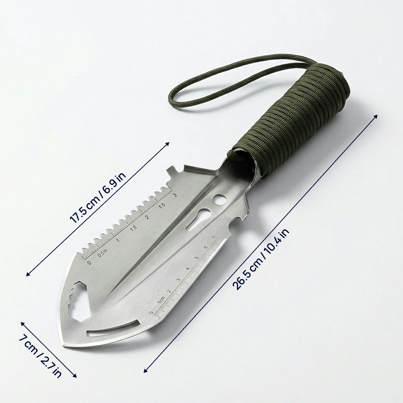 Hankin tämän pienen lapion poikani partioretkille, ja hänen mukaansa se hoiti ruokakuopat, käymäläkuopat ja kivien raivauksen ilman mitään ongelmia.