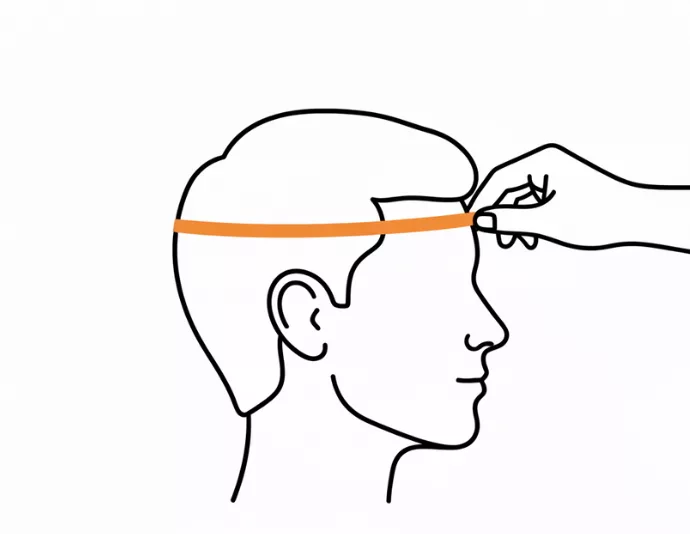 - 1. Kiedo mittanauha pään leveimmän osan ympäri, juuri kulmakarvojen ja korvien yläpuolelta.