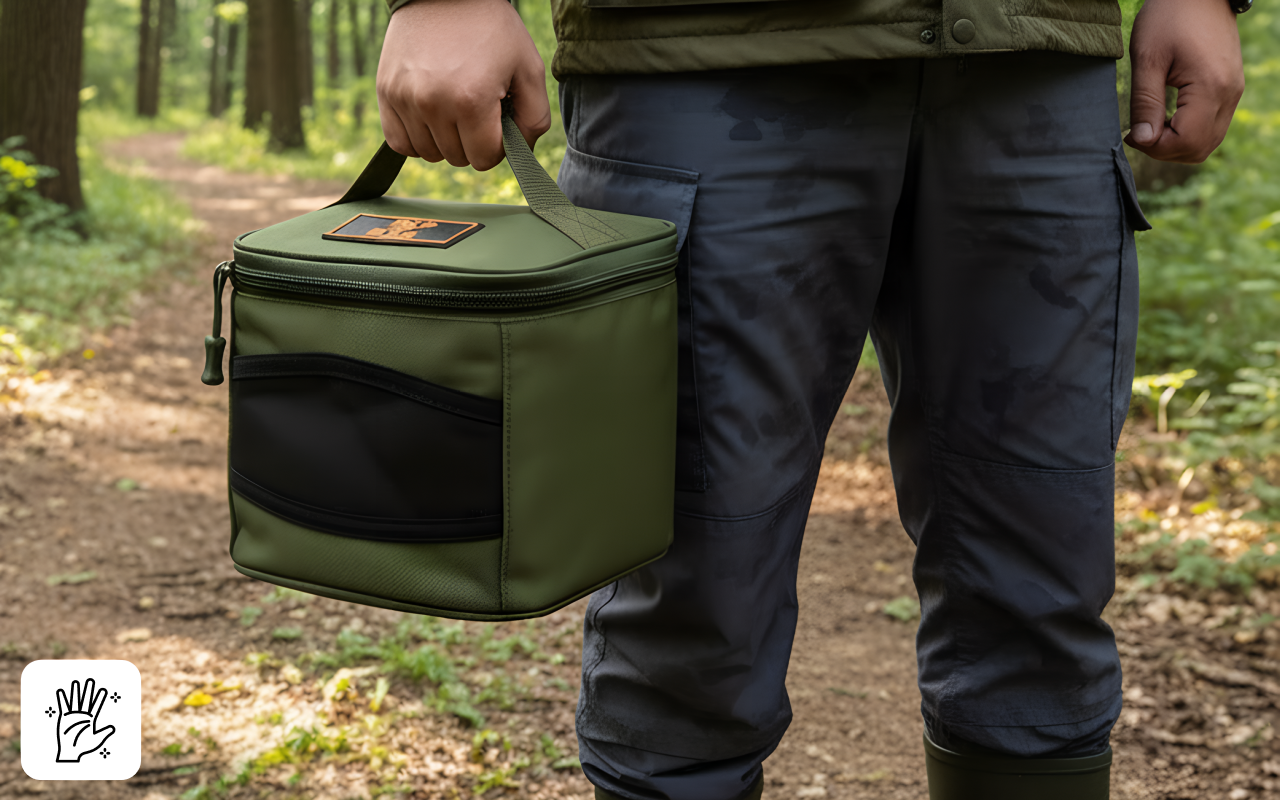 Rakastan suojaa, jota laukku antaa, varsinkin mutaisilla retkillä. Nopea tarttumakahva tekee liikkumisesta metsässä helppoa.