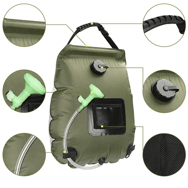 Threo-vesipussi on luotettava ja tehokas suihkuratkaisu ulkoilmaihmisille. Se voi lämmittää vettä 3 tuntia suorassa auringonvalossa ja pitää sisällään jopa 20L/5 gallonaa vettä, tarjoten 8–10 minuuttia jatkuvaa peseytymistä. Helppo ripustaa ja kantaa — ihanteellinen ulkoilutarvike retkeilyyn, vaellukseen, rinkkailemiseen ja muuhun.